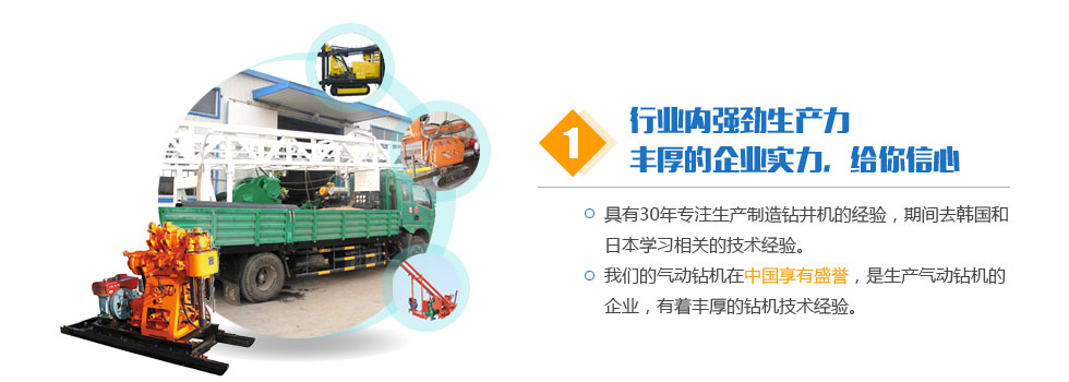 客戶共創(chuàng)雙贏。堅(jiān)持科技先導(dǎo)、質(zhì)量第一、信譽(yù)第一。讓我們用真誠的智慧共同締造事業(yè)的成功。讓我們用真誠的智慧共同締造事業(yè)的成功。希望與您的合作,能為我們的雙方共添輝煌。經(jīng)營宗旨:質(zhì)量求生存,信譽(yù)樹品牌,價格贏打井設(shè)備市場,創(chuàng)新圖發(fā)展。我們將以一流的技術(shù)換取您的信賴和欣慰。公司以人為本,廣納天下人才,技術(shù)力量雄厚。公司堅(jiān)持以人為本,以優(yōu)取勝,精誠服務(wù),持續(xù)改進(jìn)的質(zhì)量方針和氣動鉆機(jī)服務(wù)宗旨。真誠地與