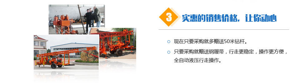 公司將繼續(xù)本著一如既往的努力,不斷發(fā)展。公司及時解決客戶生產(chǎn)過程中遇到的實(shí)際問題。創(chuàng)新文化:永不滿足,超越自我。以最完善的服務(wù)來滿足廣大用戶的需求。竭誠與您合作,共創(chuàng)美好明天。產(chǎn)品銷往全國各地,贏得用戶的一致好評,歡迎新老客戶光臨。水井鉆機(jī)公司真誠歡迎中外賓朋與本公司建立友誼。產(chǎn)品暢銷三十多個省市,深受廣大